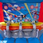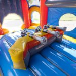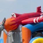 Zamek uszyty jest z wielokolorowej plandeki. Na dachu atrakcji umieszczony jest ogromny dmuchany samolot 3D. Z tyłu dmuchańca umieszczona jest strzelnica.