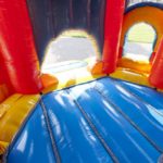 Dmuchany zamek jest zadaszony, co sprawia, że nadaje się perfekcyjnie na imprezy plenerowe. Zadaszenie chroni przed złymi warunkami pogodowymi, jak i nadmiarem słońca.