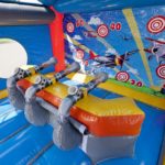 Dmuchaniec z grą strzelecką znajdującą się wewnątrz dmuchańca.